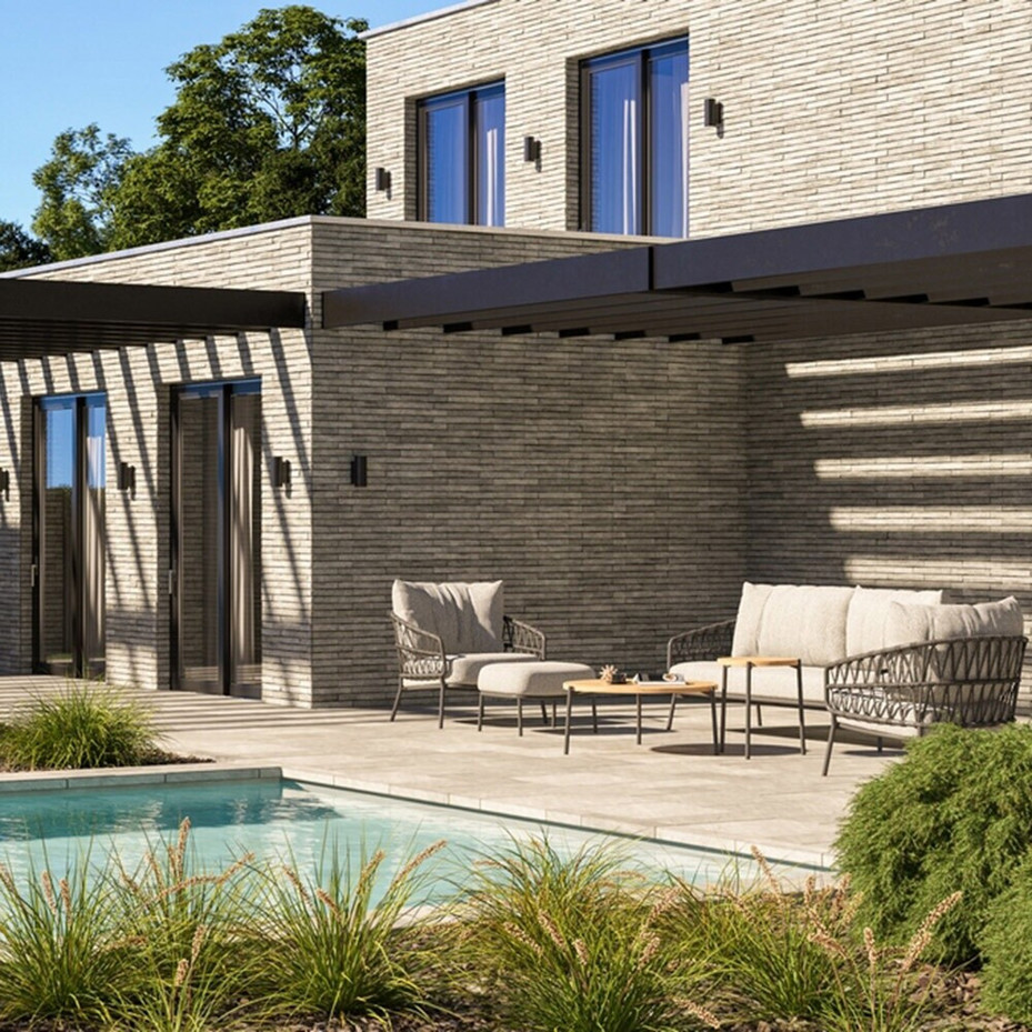 Das Calpi Sofa verbindet modernes Design mit hoher Funktionalität. Die neutrale graue Farbgebung fügt sich harmonisch in jede Gartengestaltung ein und schafft eine einladende Atmosphäre für gemütliche Abende oder entspannte Nachmittage mit Familie und Freunden.