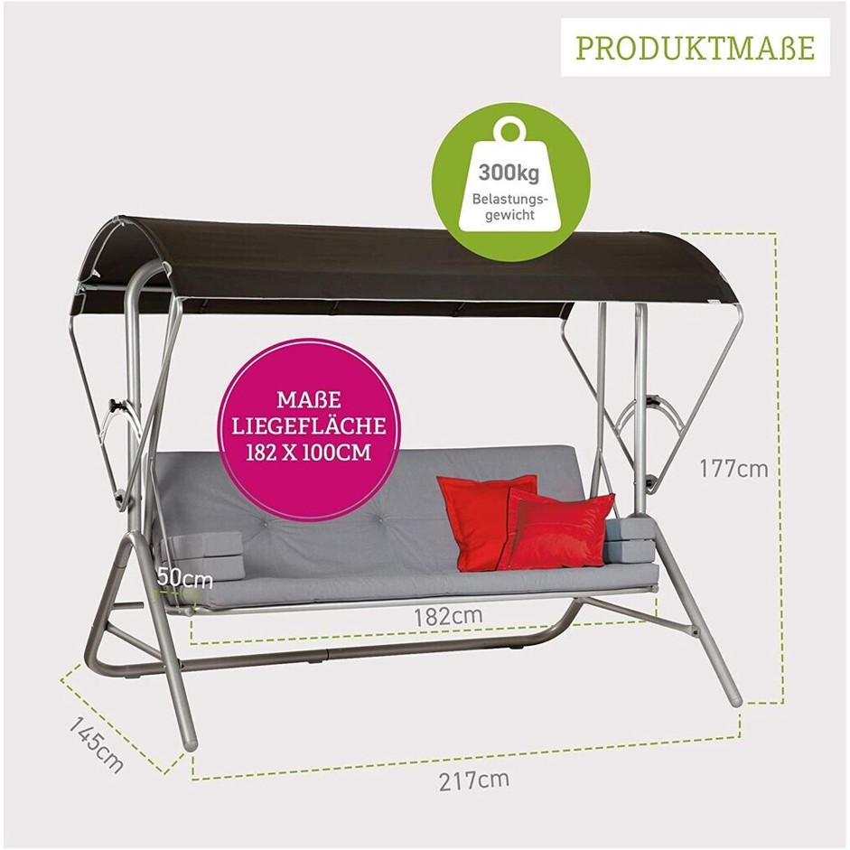 | Schaukeltypen: | Hollywoodschaukel mit Liegefunktion, Hollywoodschaukel 3-Sitzer |