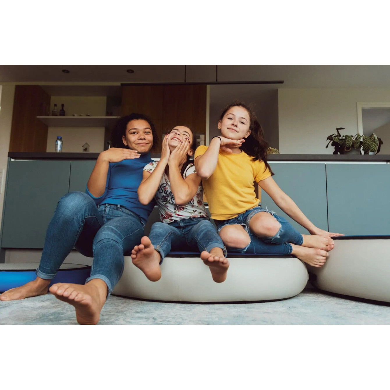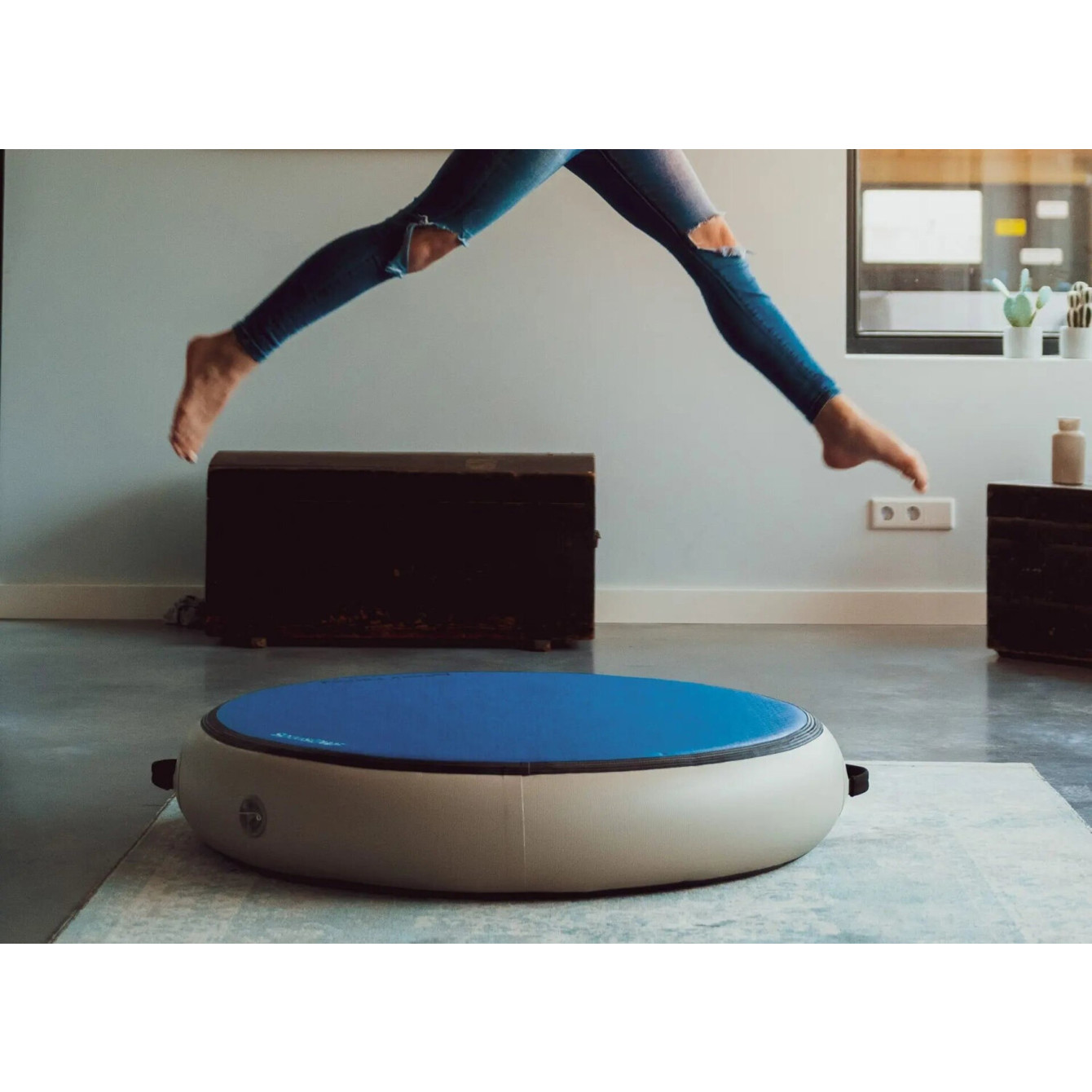 Entdecken Sie die AirTrack Factory AirSpot, die perfekte aufblasbare runde Sportmatte in einem ansprechenden Blau!