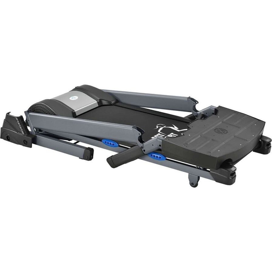 Mit insgesamt 99 Trainingsprogrammen können Sie Ihr Workout individuell gestalten und diese Ziele verfolgen, die Sie sich gesetzt haben. Das Laufband ist klappbar und mit Transportrollen ausgestattet, was es einfach macht, Platz zu sparen, wenn es nicht in Gebrauch ist.