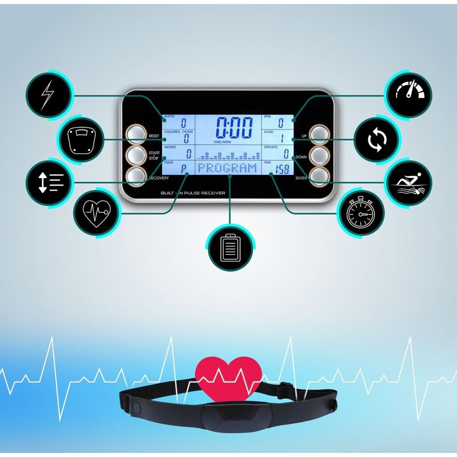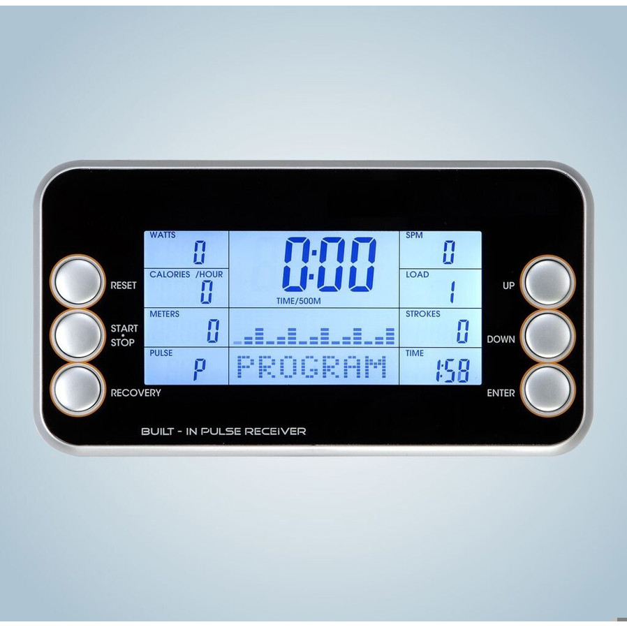 Das klare LCD-Display zeigt alle wichtigen Trainingsdaten wie Distanz, Geschwindigkeit, Kalorienverbrauch, Schlagzahl, Trainingszeit und Puls an, damit Sie immer auf dem neuesten Stand sind.