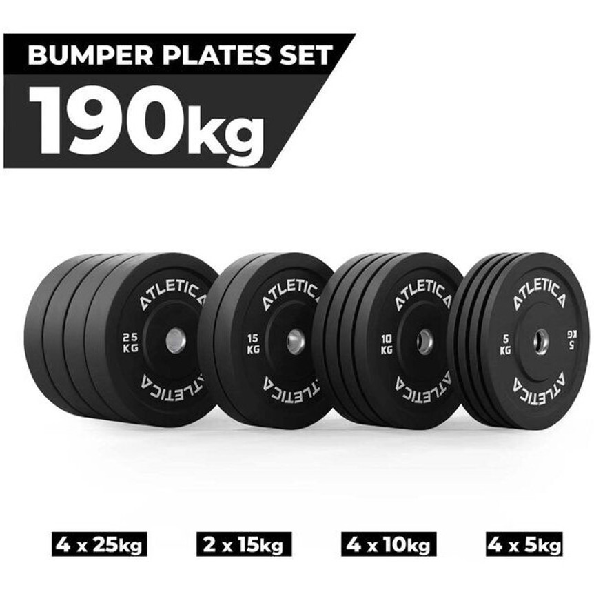 Atletica 190 kg Bumper Plates Set - Strapazierfähige Hanteln für Fitness und Gewichtheben