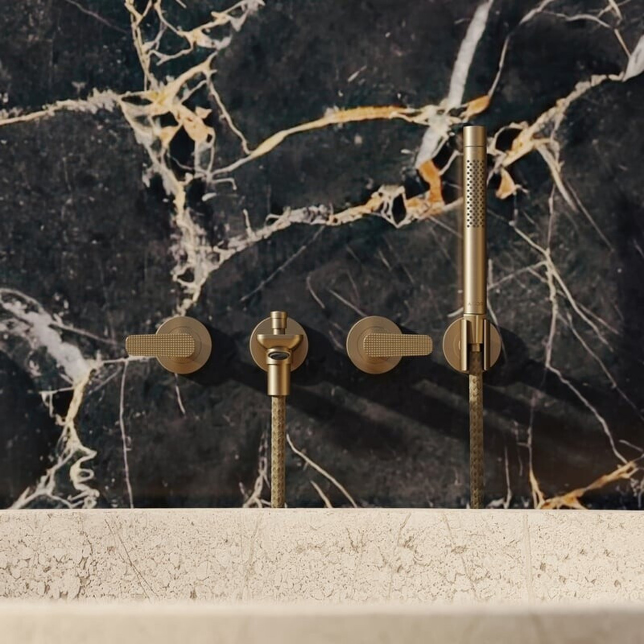 Axor Citterio C 3-Loch Wannenarmatur mit Handbrause - Cubic Cut, Messing gebürstet (49481140)