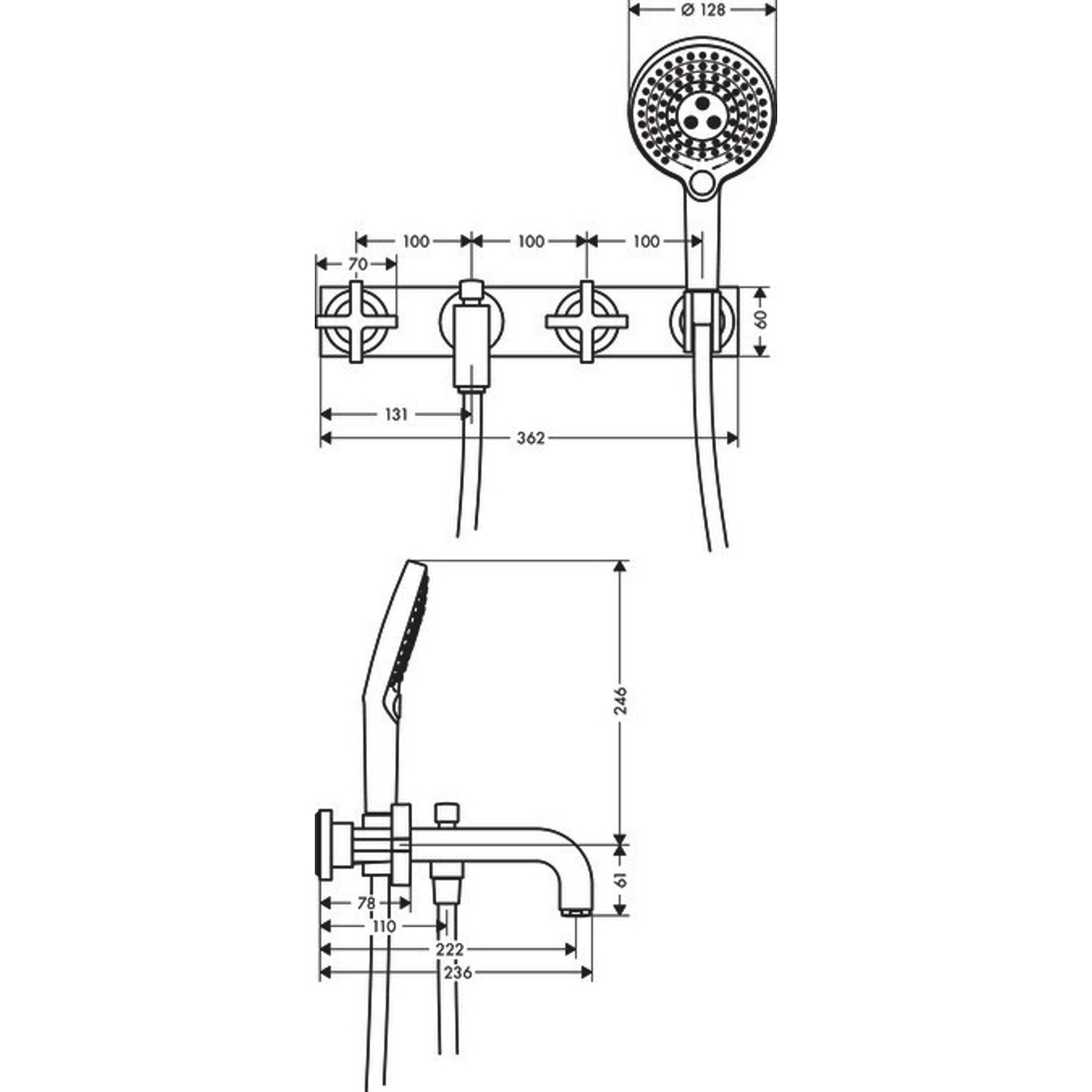 | Produkttyp: | Wannenbatterie mit Brausegarnitur |