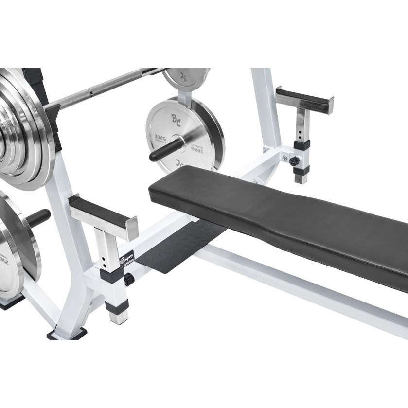 Der Rahmen besteht aus hochwertigem Stahl und begeistert durch seine elegante, weiße Farbausführung. Die schlichte, schwarze Polsterfarbe sorgt für zusätzlichen Komfort während Ihrer Trainingseinheiten. Machen Sie jetzt den ersten Schritt zu Ihrer Traumfigur mit der Bad Company Breite Drückerbank und erleben Sie, wie einfach es ist, Ihre Fitnessziele zu erreichen!