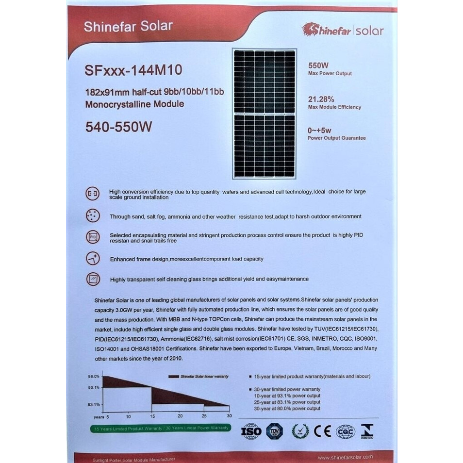 - 4 Premium-Solarmodule Shinefar SF550-144M10 mit je 550 Wp Nennleistung