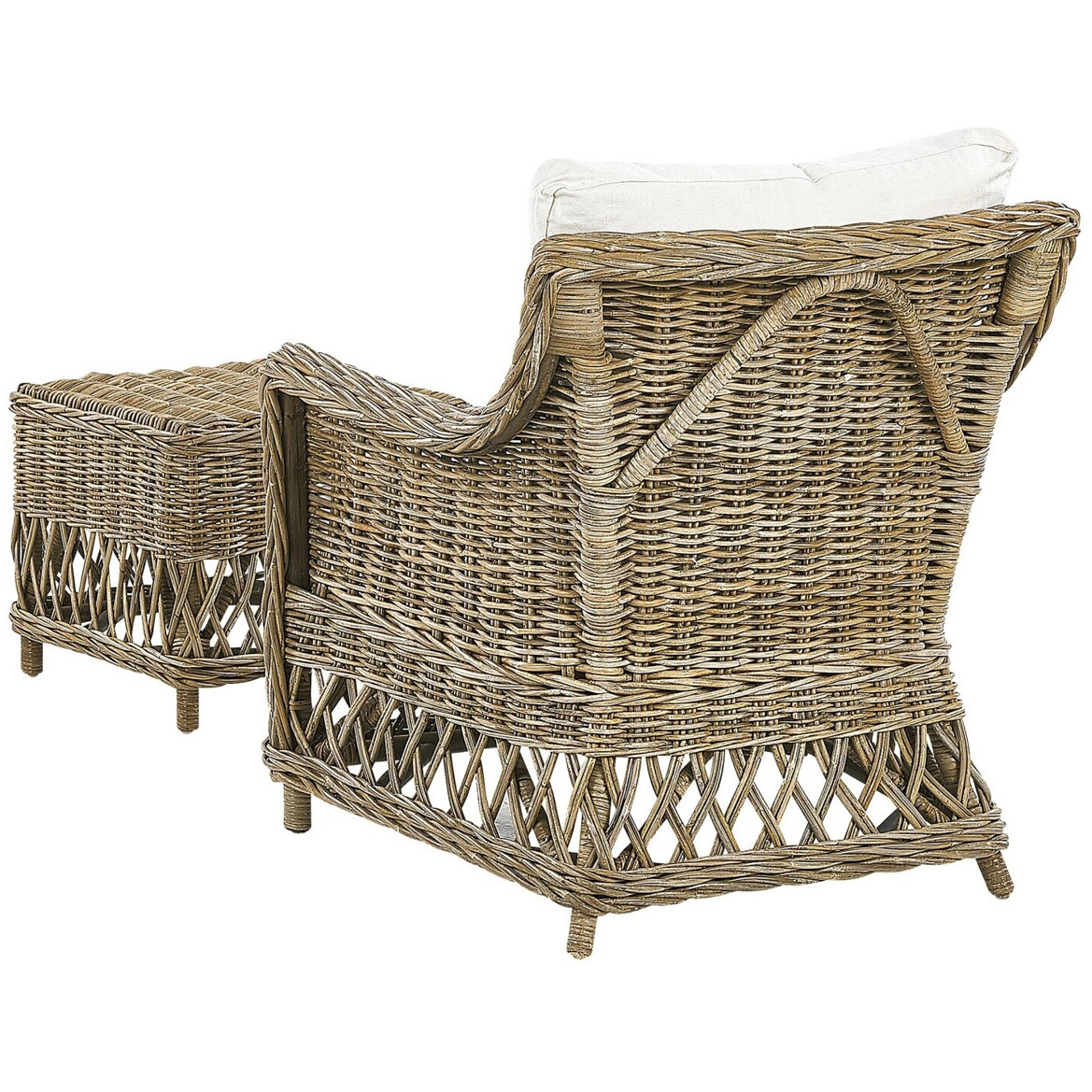 Beliani Gartensessel 2er Set mit Hocker und Auflagen natürlich Rattan creme (318427)