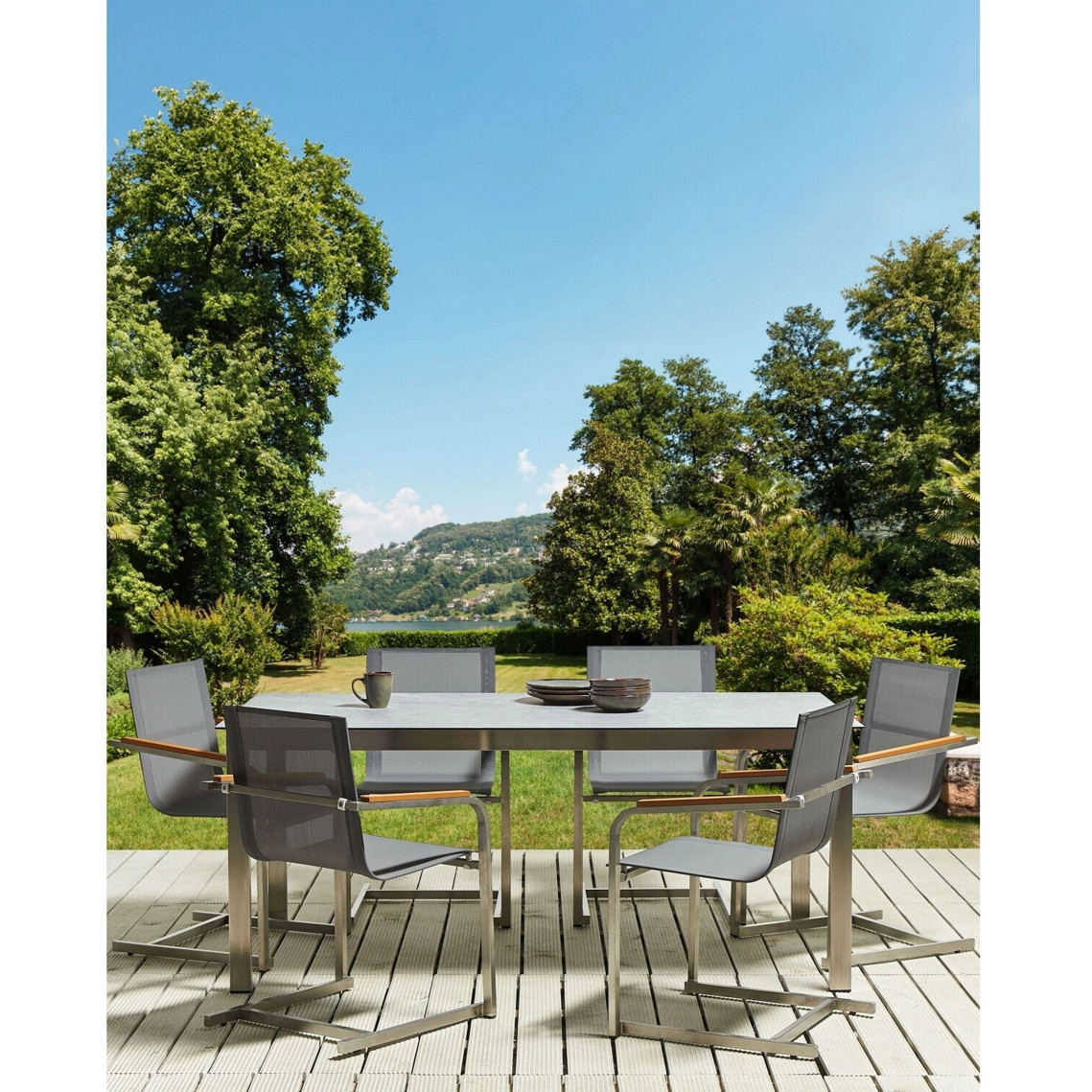 Beliani Gartenstuhl 6er Set Edelstahl - Stapelbare Gartensessel mit Armlehnen Grau Modern