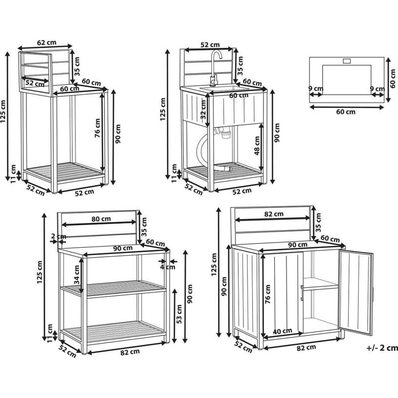 Produktinformationen "Beliani Outdoor-Küche Grau Aluminium 4er Set mit Edelstahl-Spüle"