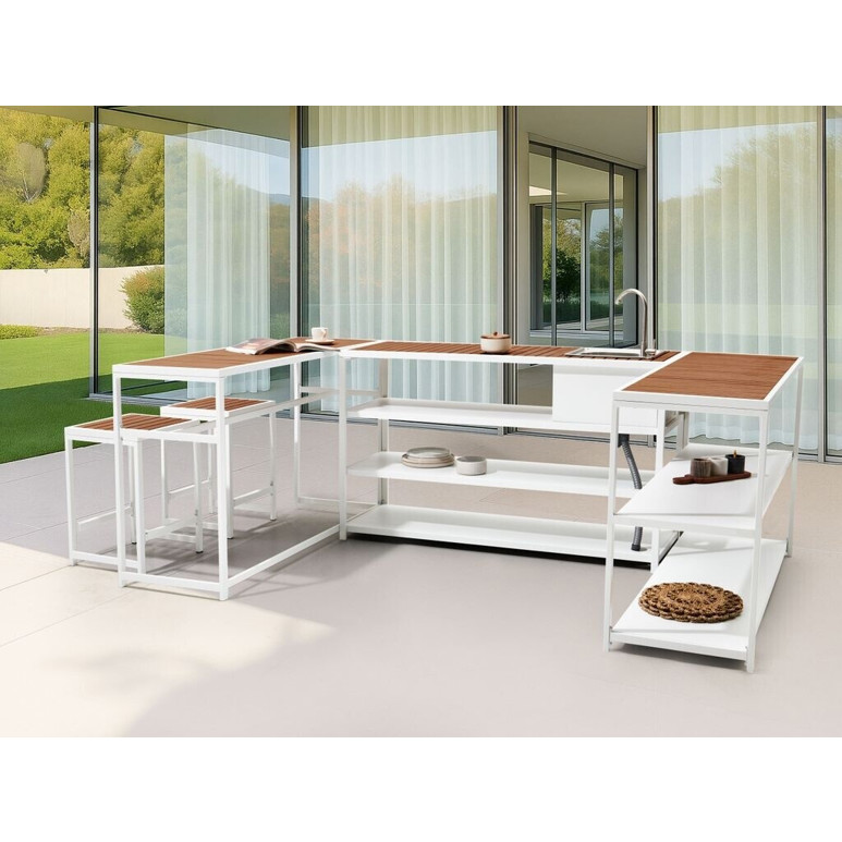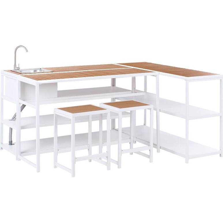 Produktinformationen "Beliani Outdoor-Küche Weiß Stahl u. Kunstholz 5er Set"