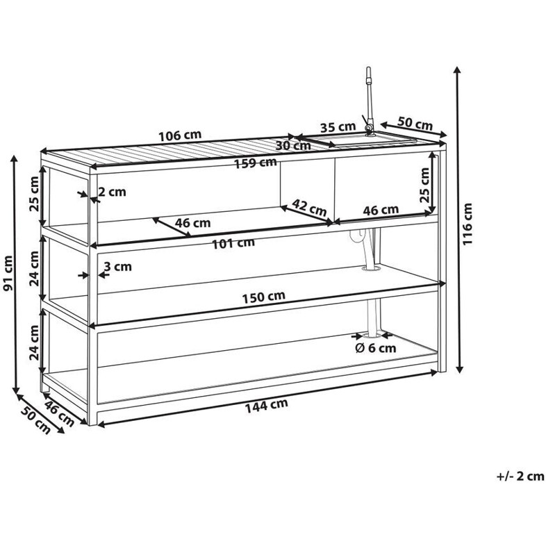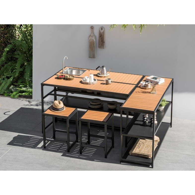 Produktinformationen "Beliani Outdoor-Kücheninsel mit Spüle schwarz Stahl u. Kunstholz 50 x 144 x 91 cm"