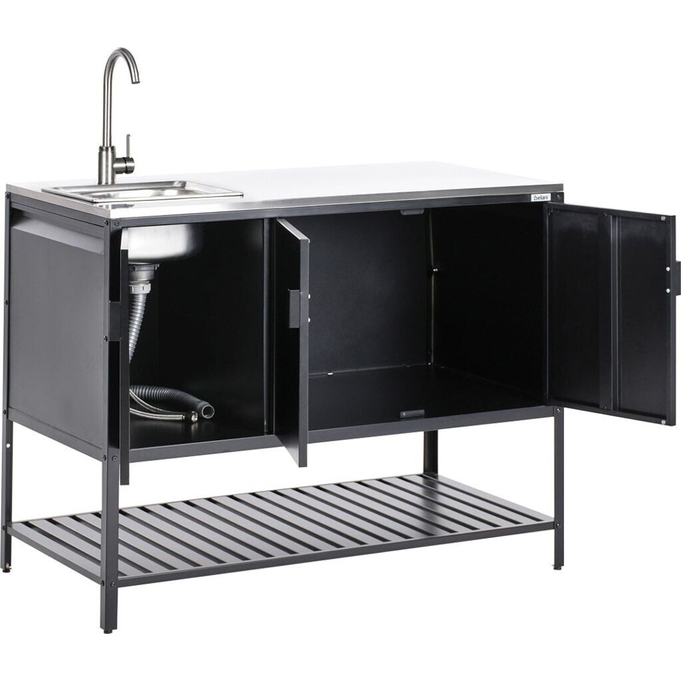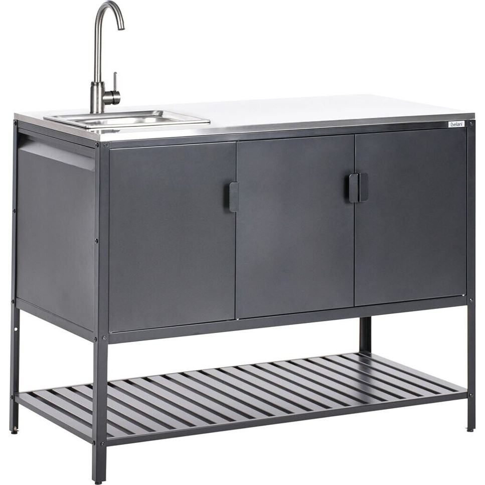 Produktinformationen "Beliani Outdoor-Küchenschrank schwarz Edelstahl 3-türig"