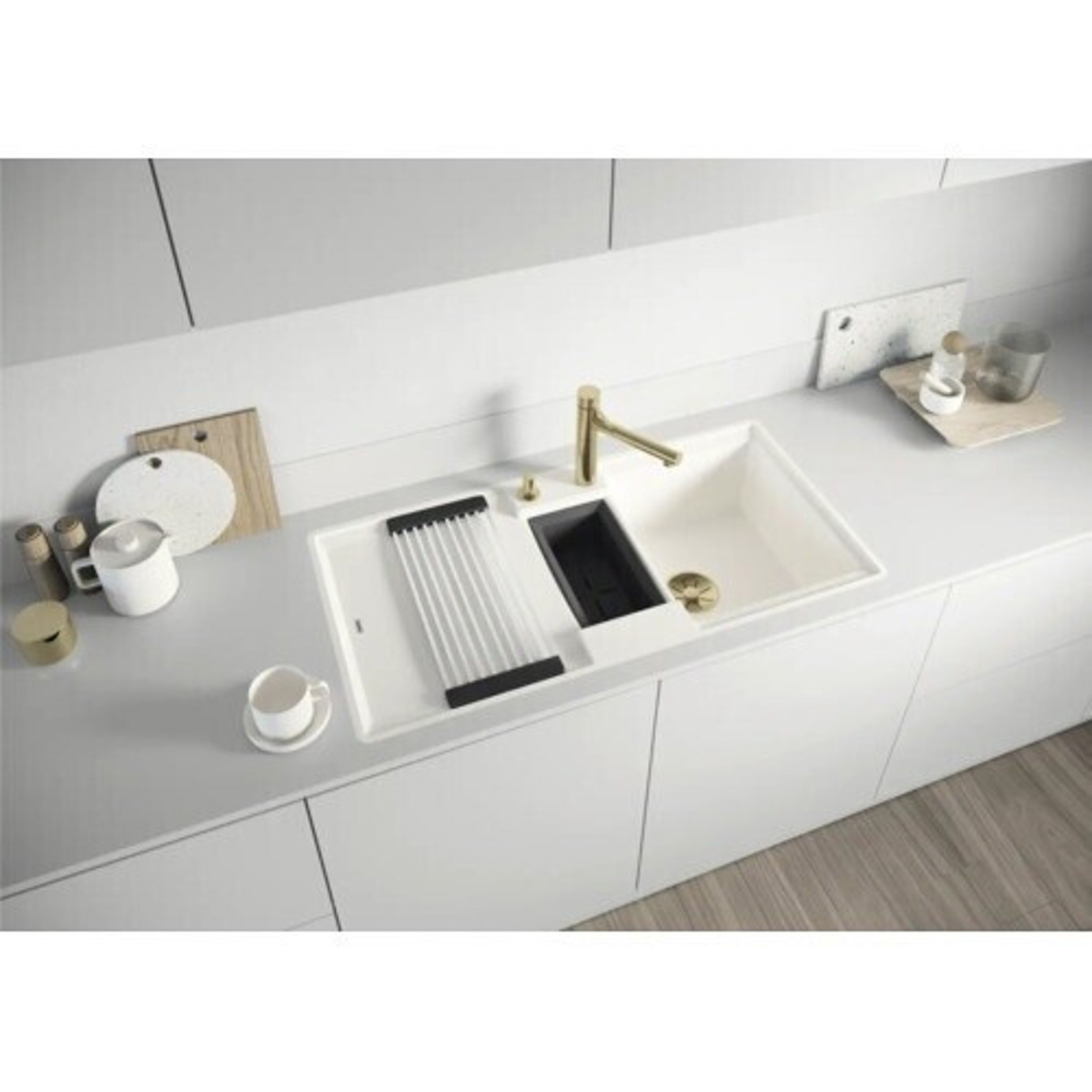Mit einer großzügigen Breite von 99 cm und einer Tiefe von 49 cm bietet diese Spüle ausreichend Platz für all Ihre Küchenbedürfnisse. Egal ob beim Spülen von Geschirr oder beim Zubereiten von Speisen – die Blanco ADIRA Spüle ist der perfekte Helfer in Ihrer Küche.