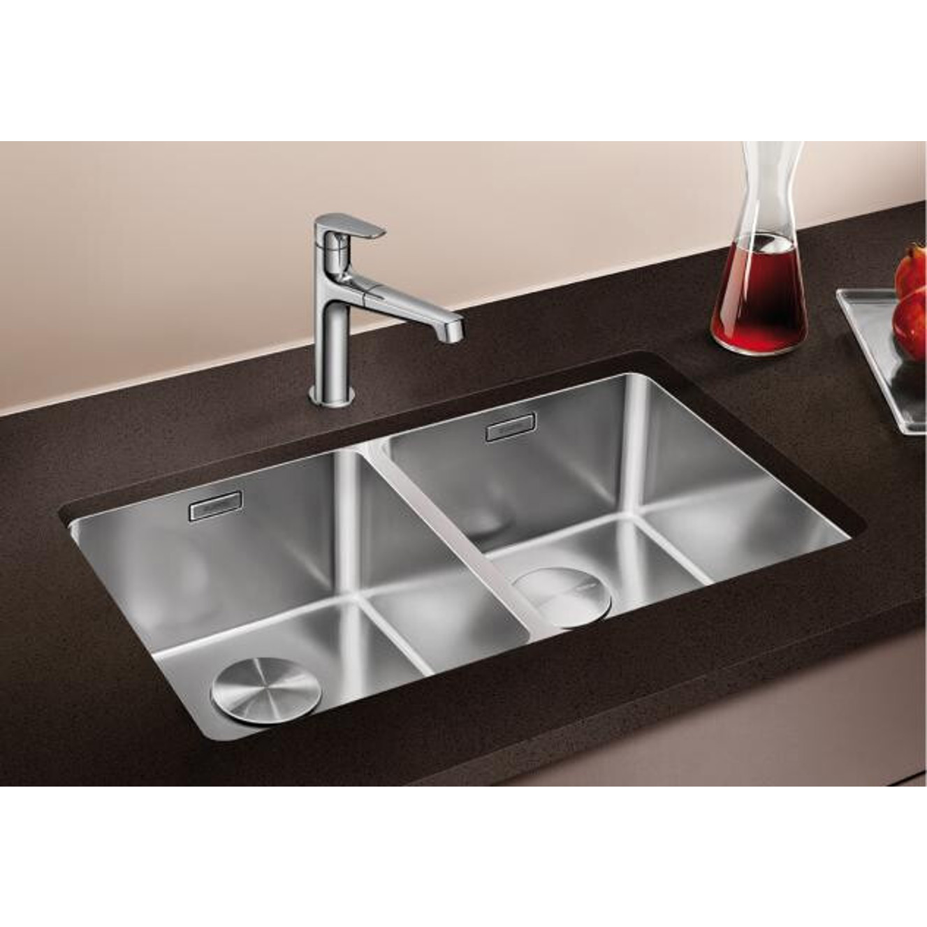Die Blanco Andano 400/400-U ist mit 2 Becken ausgestattet, die jeweils die Maße 40 x 40 cm aufweisen. Diese praktische und durchdachte Bauweise ermöglicht ein effizientes Arbeiten in der Küche.