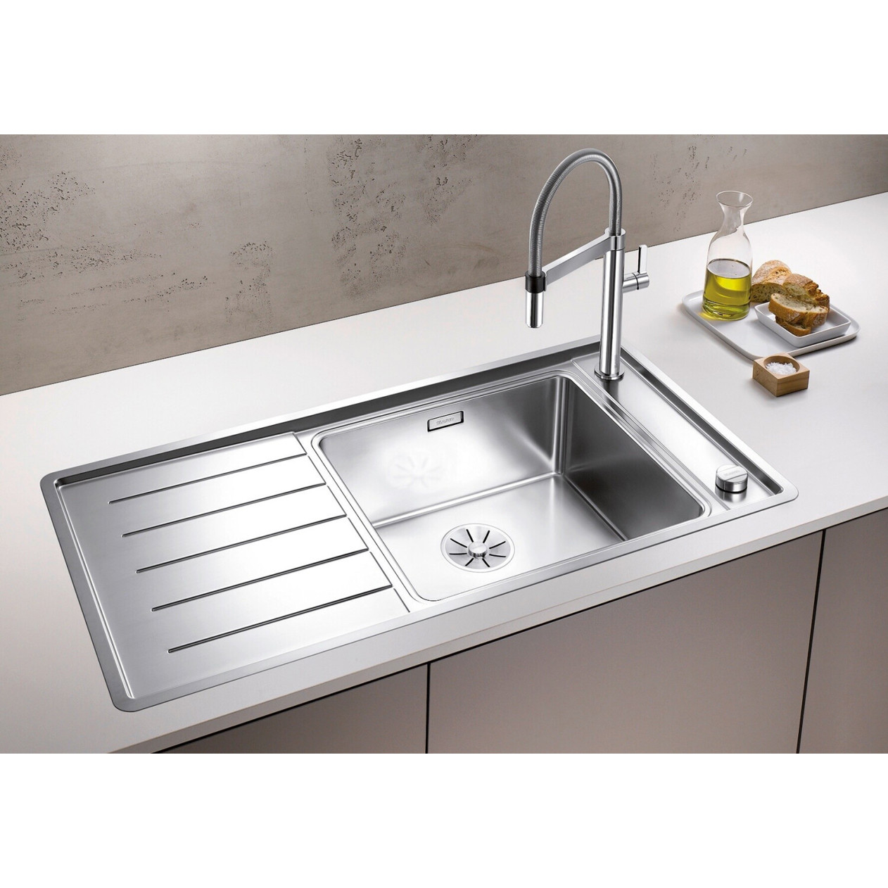Das Blanco Andano XL bietet nicht nur praktische Vorteile, sondern auch durchdachtes Design. Das Rechts befindliche Spülbecken und der verdeckt Überlauf sorgen für eine saubere Optik und verhindern lästige Spritzwasserbildung. Die Montage erfolgt komfortabel als Auflage, sodass das Becken nahtlos in Ihre Arbeitsplatte integriert werden kann.