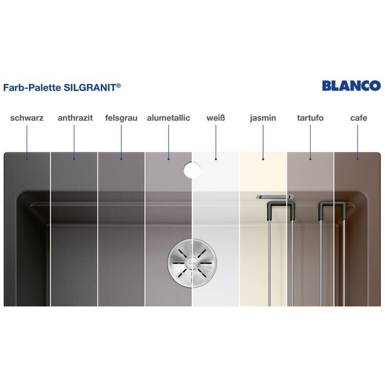 Entdecken Sie die elegante und funktionale Lösung für Ihre Küche mit dem Blanco Axia III 6 S-F mit Exzenterbetätigung. Diese rechteckige Spüle in edlem Schwarz besteht aus hochwertigem Silgranit PuraDur und bietet nicht nur eine ansprechende Optik, sondern auch hervorragende Eigenschaften. Mit einer Einbaubreite, die für Unterschränke ab 60 cm geeignet ist, lässt sie sich problemlos in jede moderne Küche integrieren.