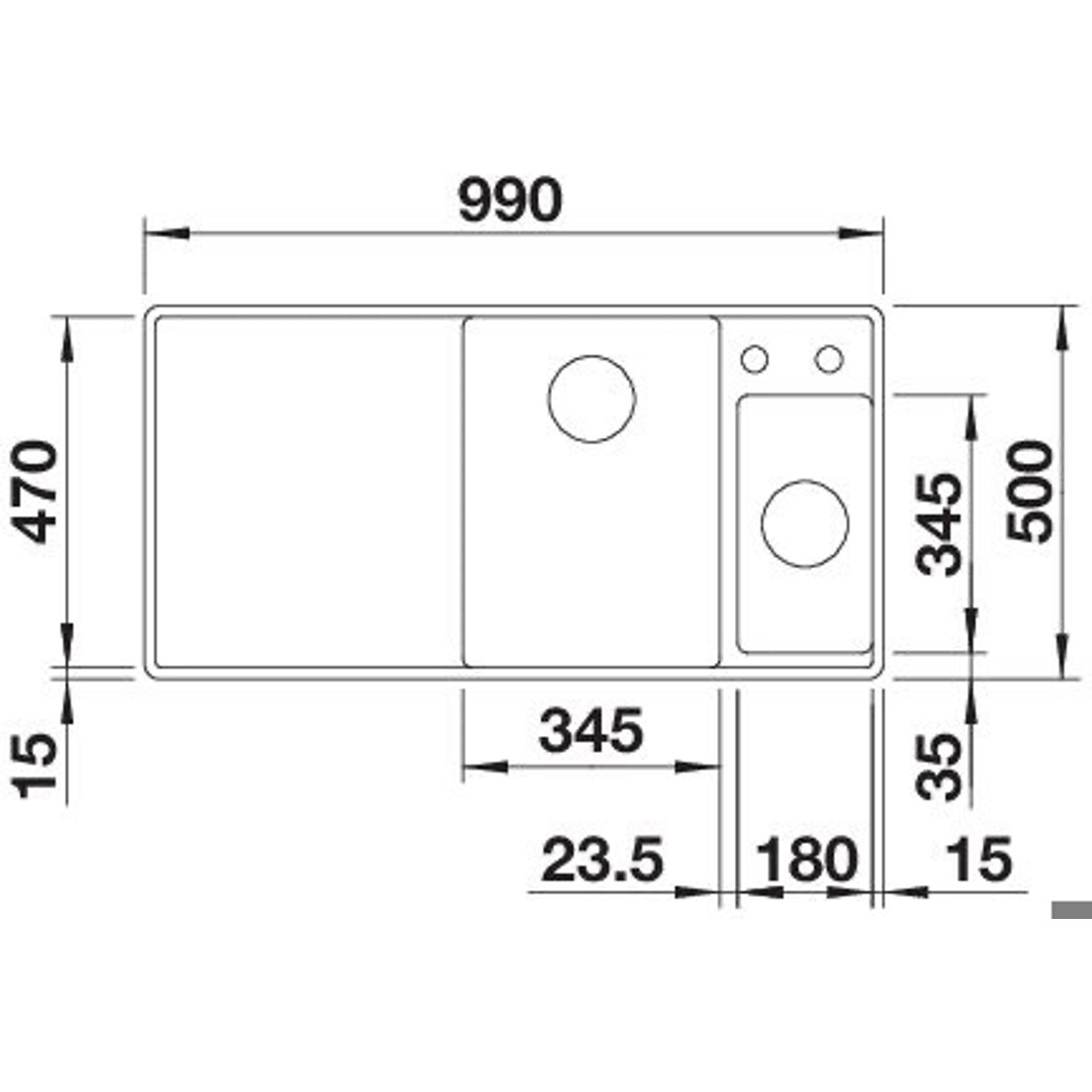Mit einer Einbaubreite von 99 cm eignet sich die Spüle für Unterschränke ab 60 cm. Sie verfügt über 1,5 Becken, wobei das Hauptbecken rechteckig angeordnet und rechts positioniert ist. Das großzügige Hauptbecken hat eine Tiefe von 47 cm und eine Breite von 34,5 cm, während das Nebenbecken mit einer Breite von 18 cm und einer Tiefe von 34,5 cm vielseitige Einsatzmöglichkeiten bietet.