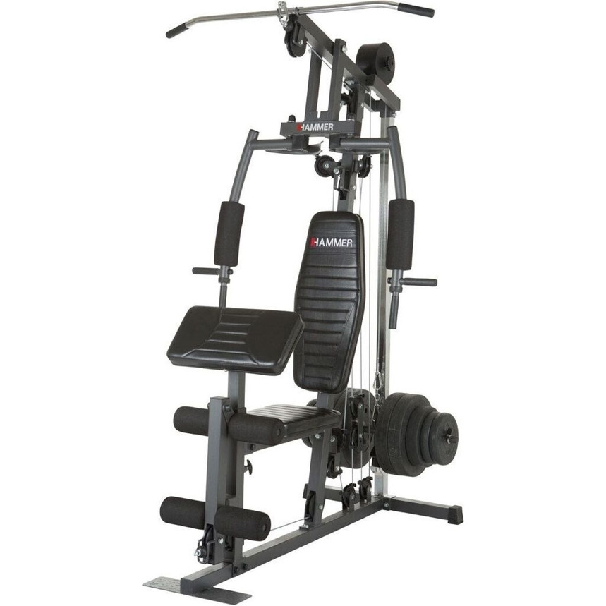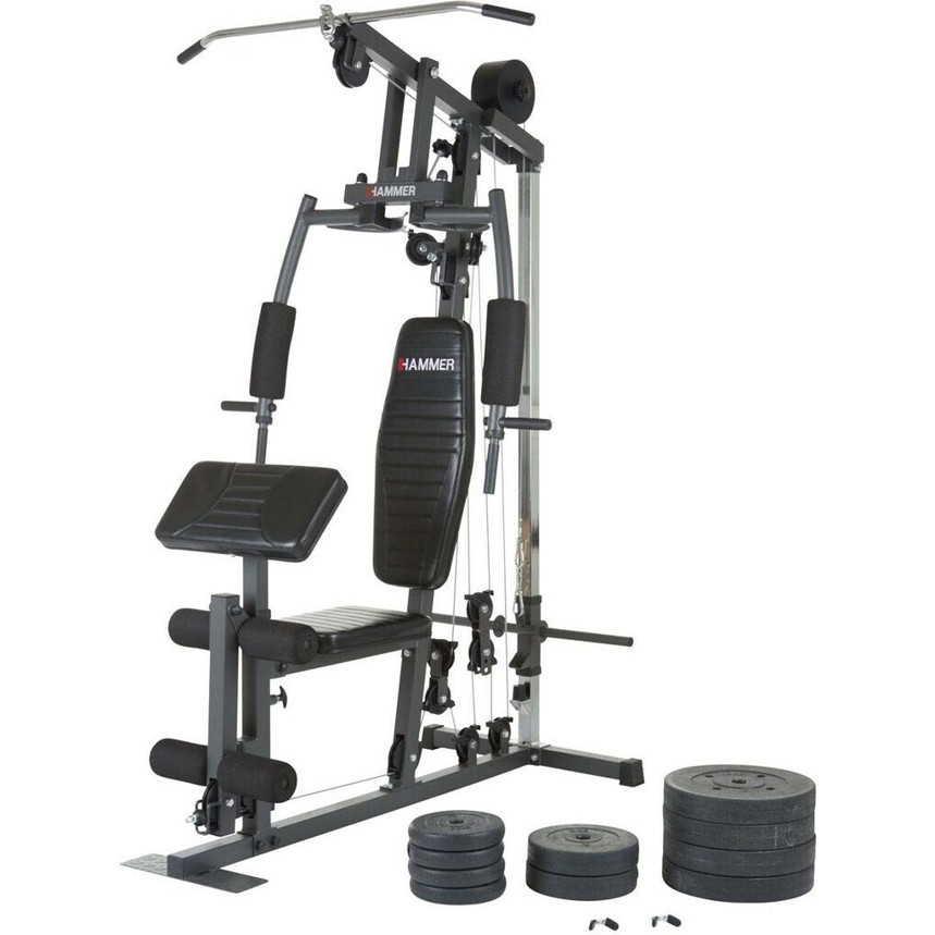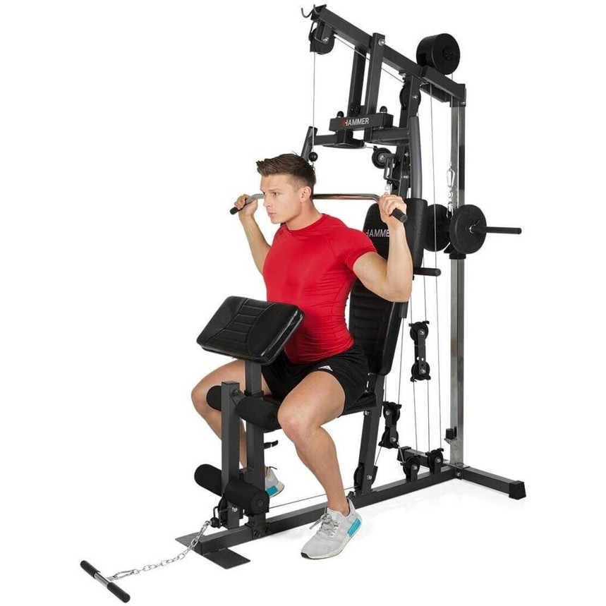 Zusätzlich ist der Hammer California XP mit einer Metall Trittplatte ausgestattet und wird mit nützlichstem Zubehör geliefert, darunter eine Latissimusstange und eine Curlstange. Die integrierten Geräte wie die Bankdrückeinheit, die Butterflyeinheit, das Armcurlpult und der Beincurler bieten Ihnen alles, was Sie für ein effektives Training benötigen.