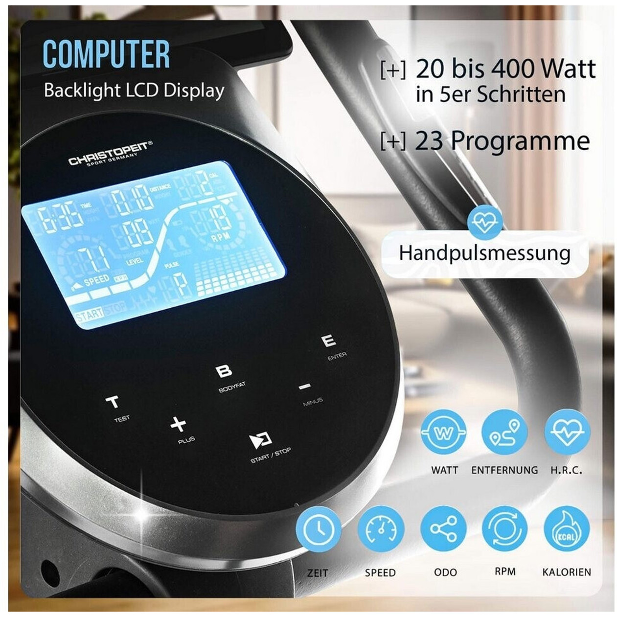 Erleben Sie ein effektives und komfortables Training mit dem Christopeit Ergometer EM 8000, Ihrem idealen Heimtrainer.