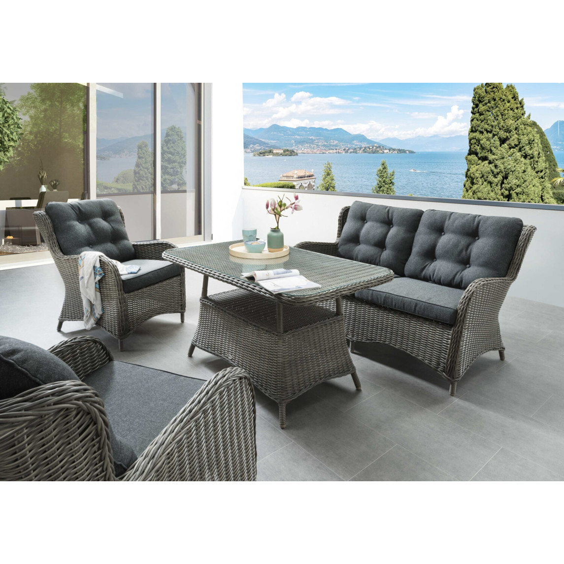 | Sitzflächenmaterial: | Polyrattan |