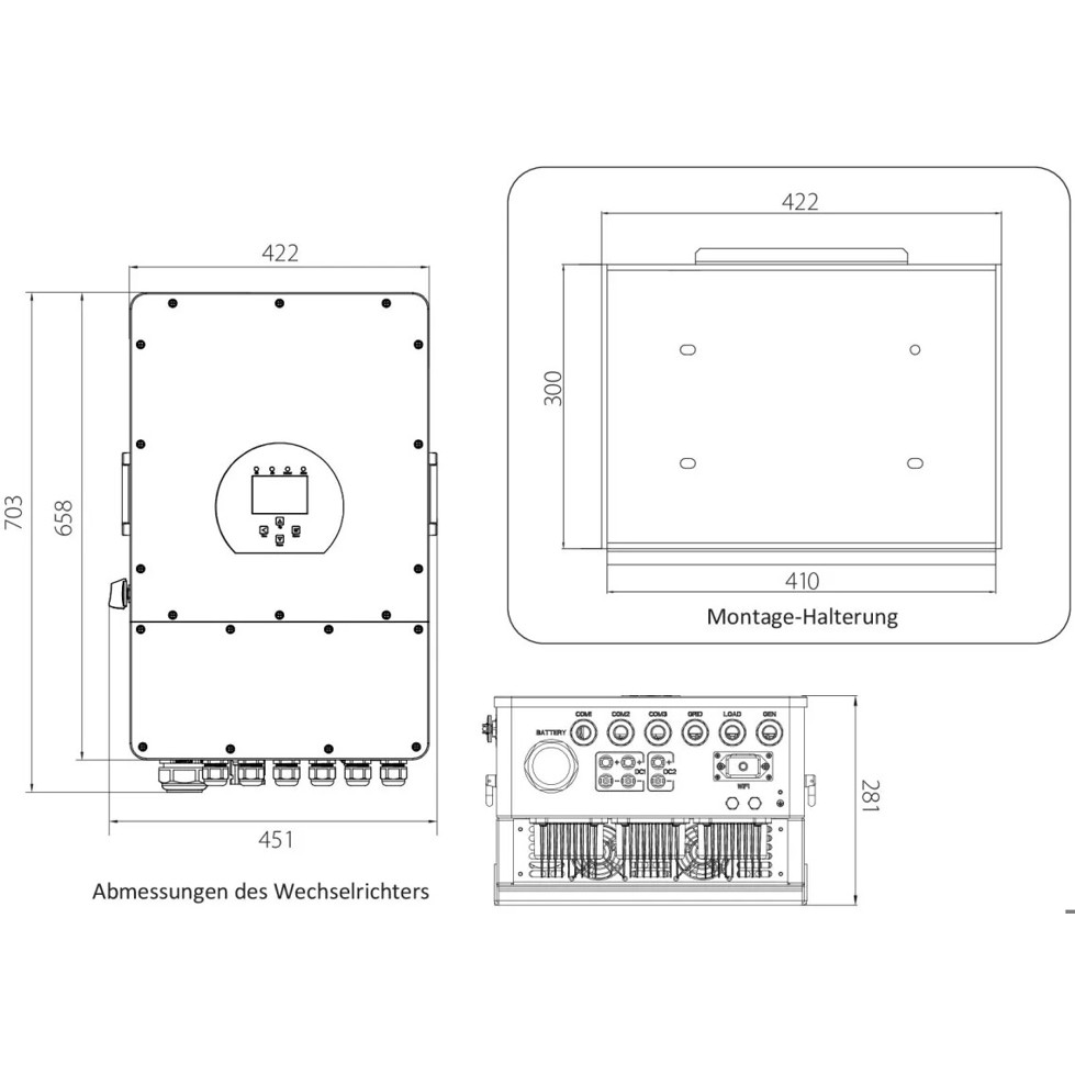 - Hohe Leistung: 12 kW Nennleistung, 13,2 kW Ausgangsleistung und bis zu 15,6 kW Peak-Leistung