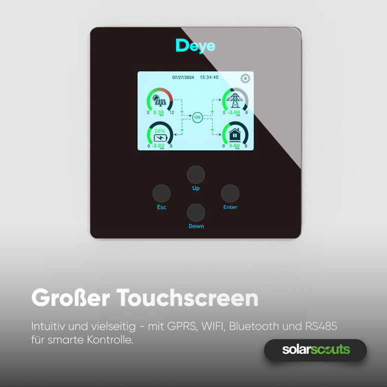 Ausgestattet mit modernen Schnittstellen (RS485, RS232, CAN) und übersichtlichem Grafikdisplay für einfache Überwachung und Steuerung Ihrer Solaranlage. Perfekt für die Integration in Smart-Home-Systeme.
