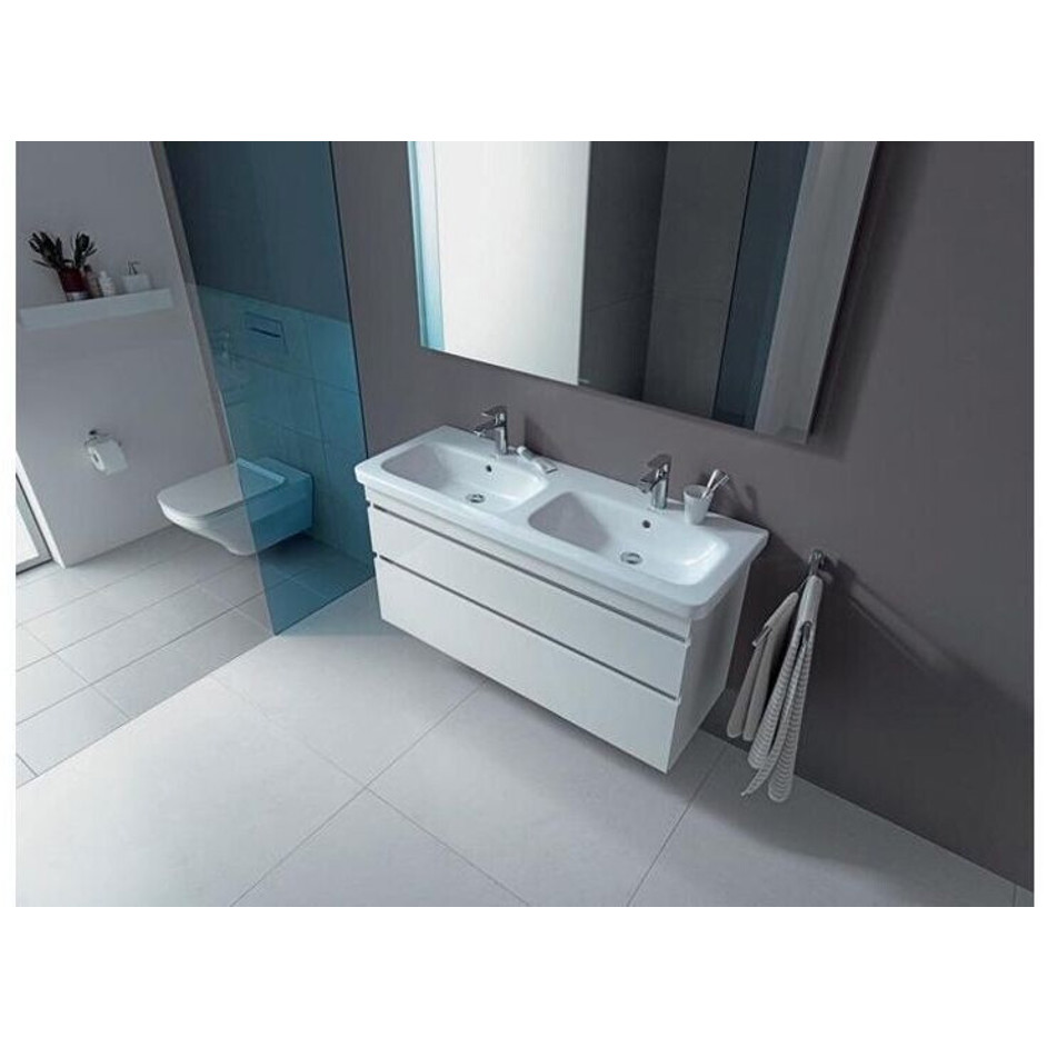 Erleben Sie den Luxus und die Funktionalität des Duravit DuraStyle Doppelwaschtischs bei einer Breite von 130 cm und einer Tiefe von 48 cm. Der elegante Waschtisch in weiß alpin fügt sich harmonisch in jedes Badezimmer ein und verleiht ihm eine moderne Note.