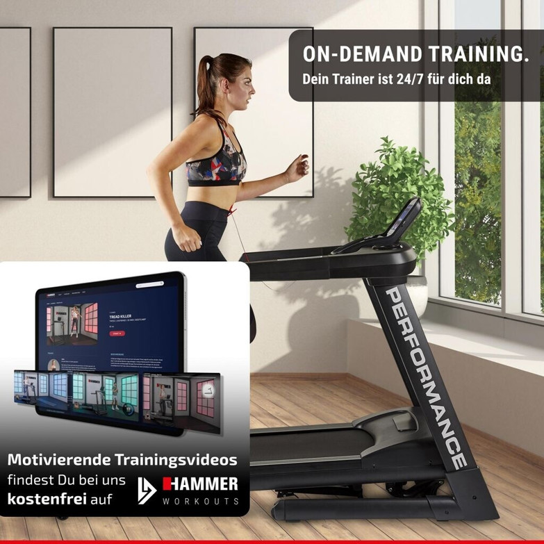 Die Pulsmessung erfolgt einfach über die Handpulssensoren oder optional über einen Brustgurt, während die mit Handpulssensoren ausgestatteten Handläufe zusätzlichen Halt bieten. Mit einer Dauerleistung von 3,5 PS und einer maximalen Leistung von 9 PS sorgt das Laufband für einen kraftvollen Antrieb.