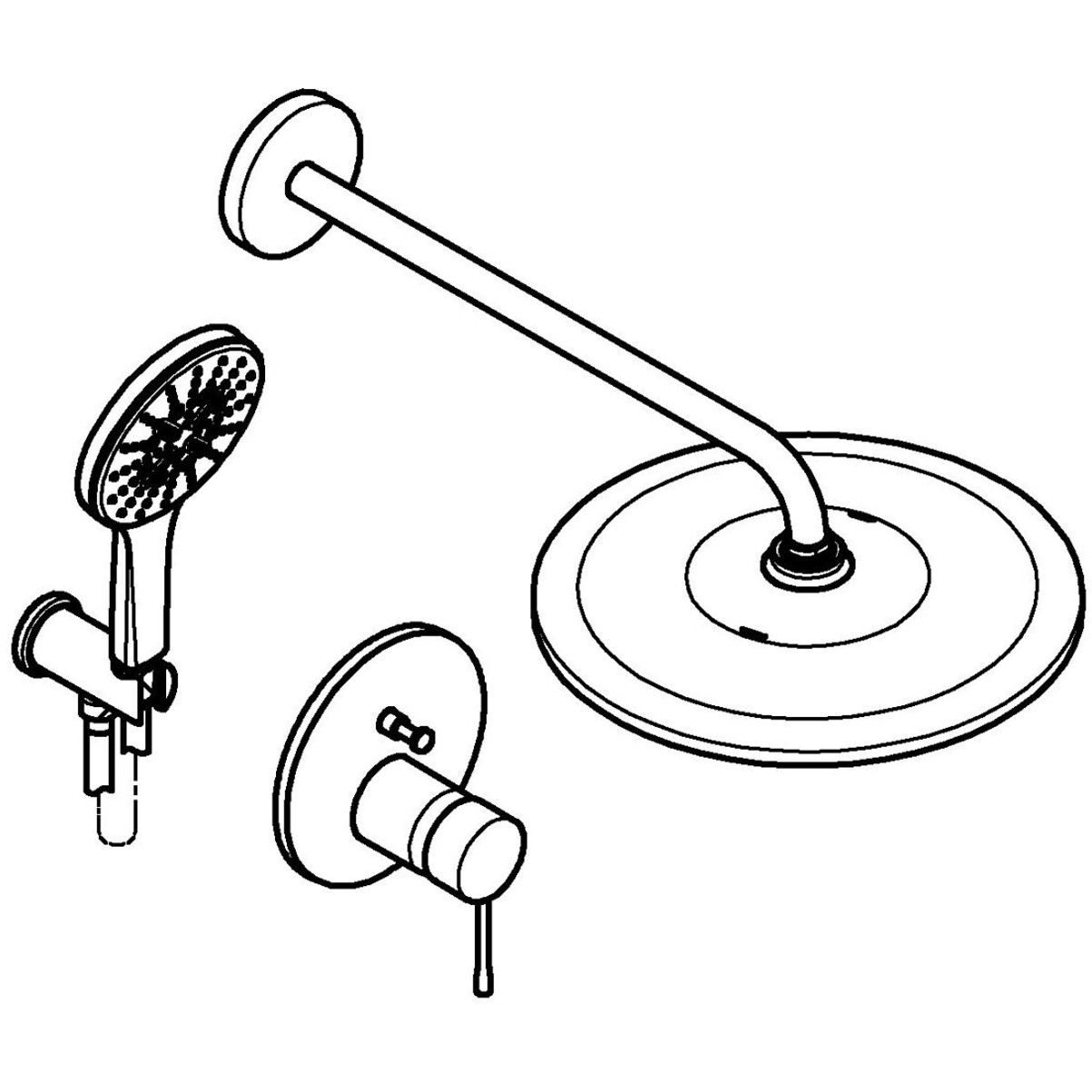 | Komponenten Duschsystem: | Grundkörper, Kopfbrause, Einhandmischer, Brausearm, Brauseschlauch, Thermostatbatterie, Handbrause, Wandanschlussbogen |