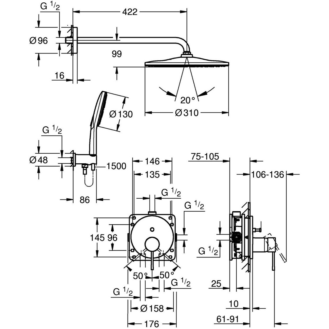 | Duschkopfdurchmesser: | 310 mm, 130 mm |
