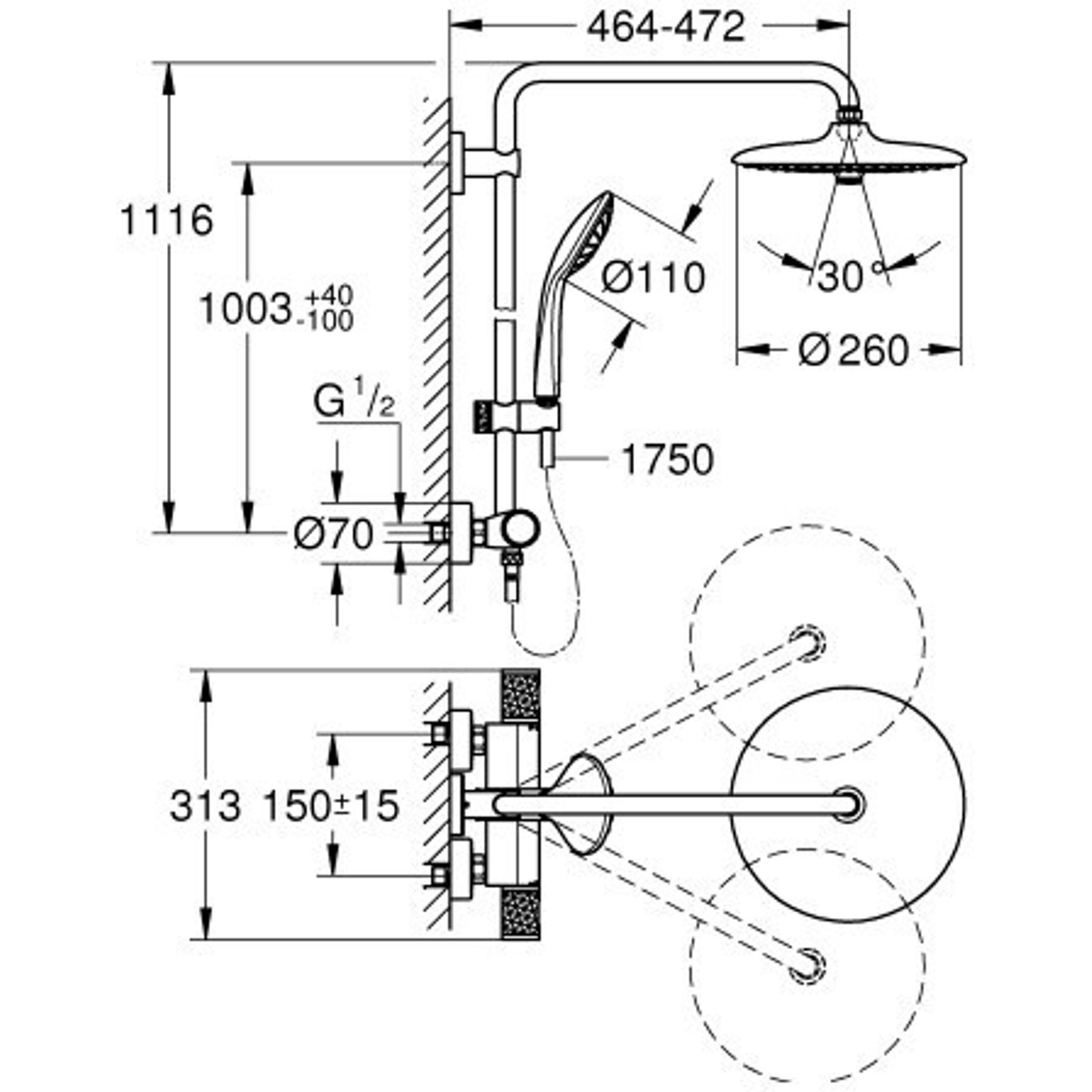 | Duschkopfdurchmesser: | 260 mm, 110 mm |