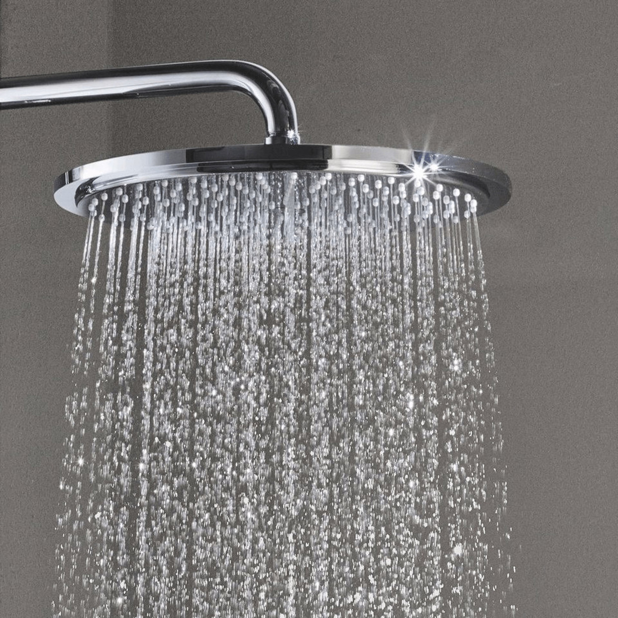 Die GROHE Rainshower Cosmopolitan 310 Kopfbrause mit einem Durchmesser von 310 mm bietet ein perfektes Strahlbild, das durch die innovative GROHE DreamSpray-Technologie optimiert wird. Wählen Sie aus bis zu vier verschiedenen Strahlarten: Rain, PureRain, SmartRain und Massage, um das Duschen so individuell wie möglich zu gestalten.