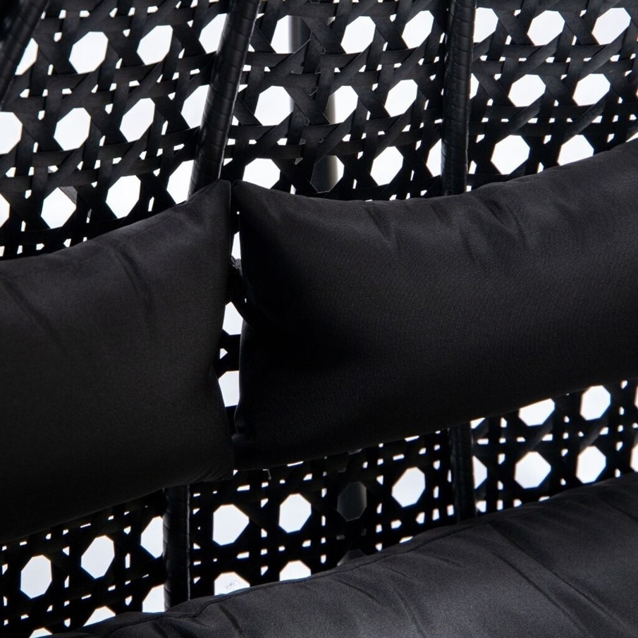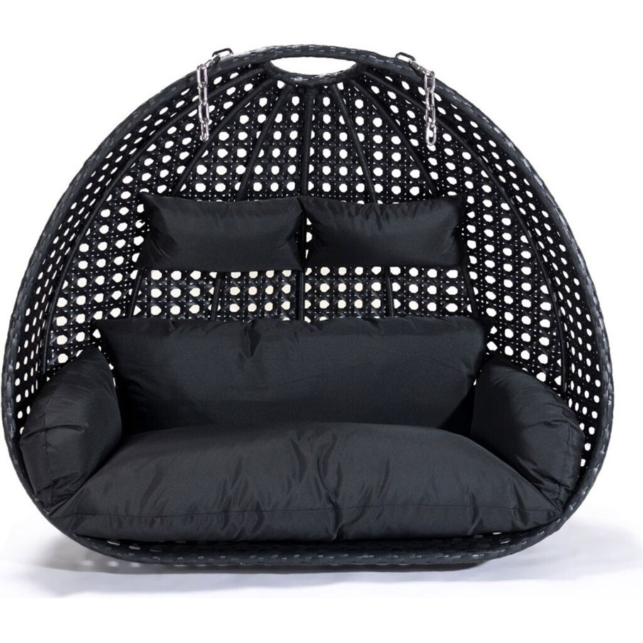 Home Deluxe Polyrattan-Hängesessel TWIN für 2 Personen - Schwarz mit Kissen - 145x126x74 cm