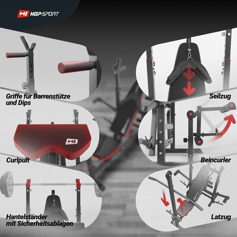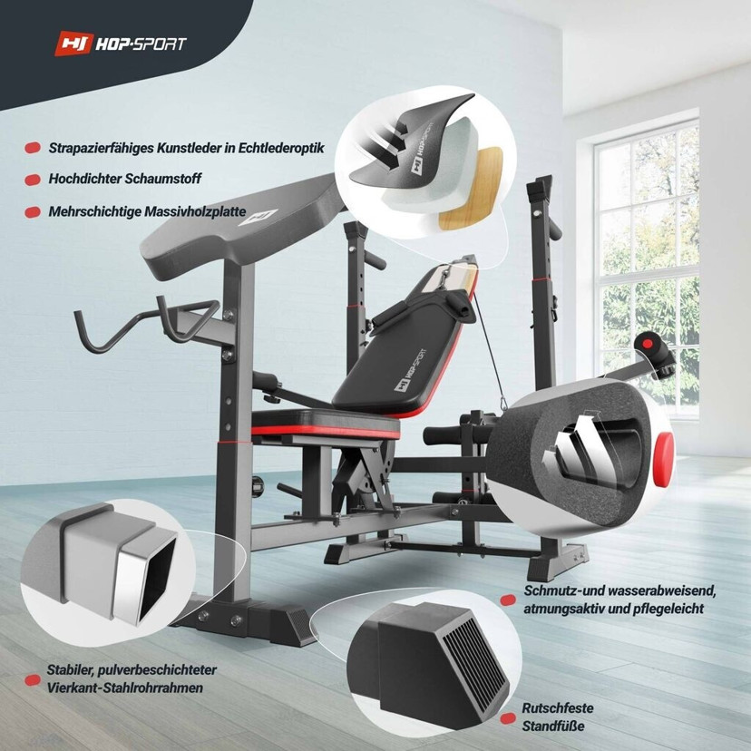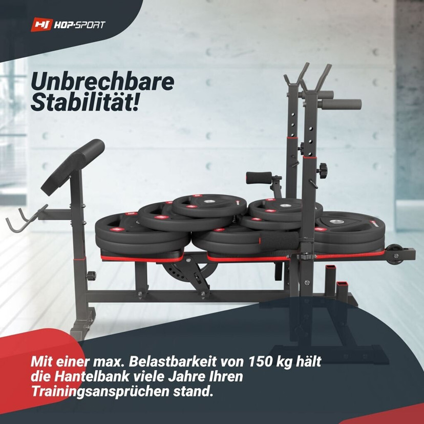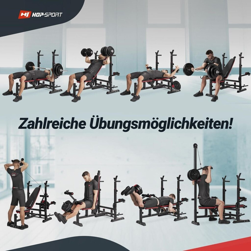 Investieren Sie in Ihre Fitness mit der Hop-Sport Hantelbank HS-1075 und erreichen Sie Ihre Trainingsziele bequem von zu Hause aus!