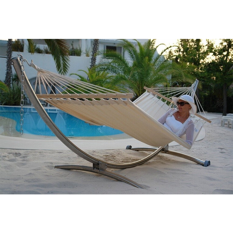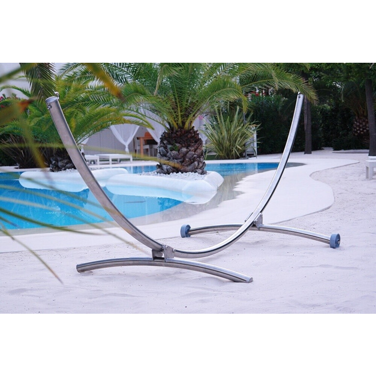 Erleben Sie puren Komfort mit dem Lola ROYAL DELUXE Hängemattengestell. Diese hochwertige Konstruktion aus robustem Edelstahl bietet die perfekte Grundlage für Ihre Entspannungsmomente im Garten, auf der Terrasse oder dem Balkon.