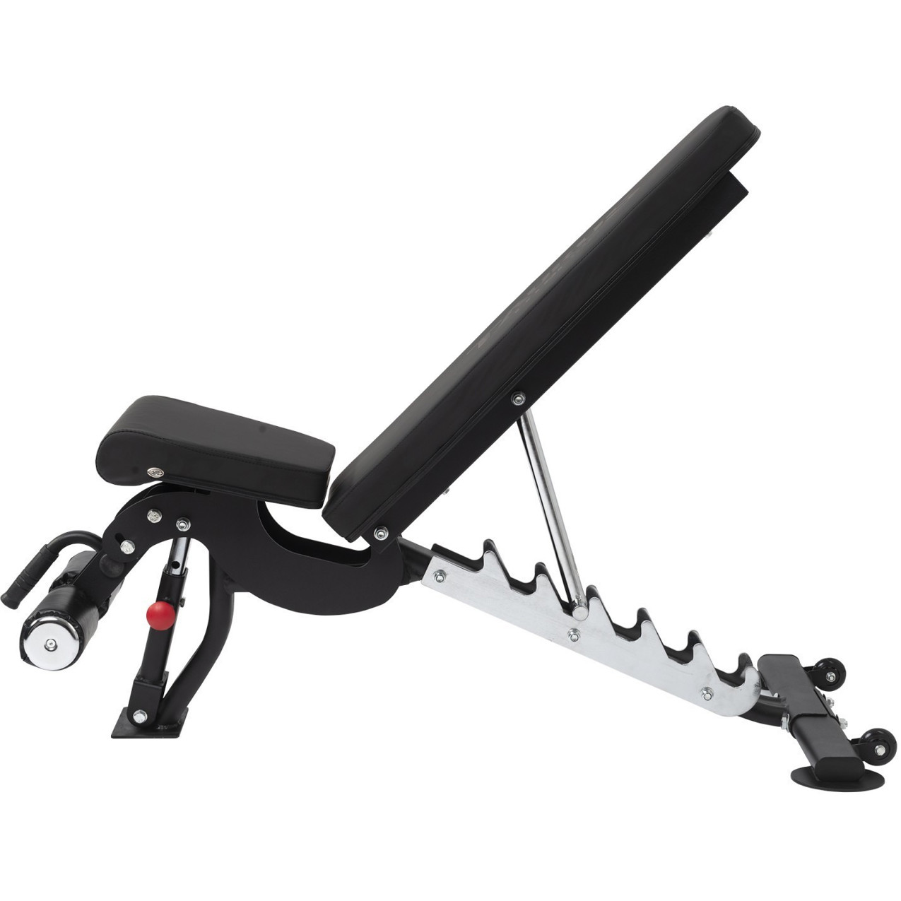 Die Hantelbank überzeugt durch ihre elegante schwarze Polsterung und den robusten schwarzen Rahmen, die nicht nur ansprechend aussieht, sondern auch für maximale Stabilität sorgt. Die Rückenlehne ist 7-fach verstellbar, sodass Sie immer die optimale Position für Ihr Training finden. Die Sitzfläche ist zudem 4-fach verstellbar und bietet zusätzlichen Komfort während Ihrer Workouts.